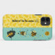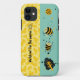 Happy yellow honey bees, flying on the honeycomb, Sweet yellow and black bees on a green background with design for the yellow honeycomb.
