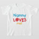 Nanny Loves Me T-shirts, cards, stickers, bodysuits bags, and more with colourful red, yellow, and blue text and heart design. These Nanny Loves me apparel and gift items will make nanny smile!