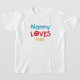 Nanny Loves Me T-shirts, cards, stickers, bodysuits bags, and more with colourful red, yellow, and blue text and heart design. These Nanny Loves me apparel and gift items will make nanny smile!