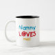 Nanny Loves Me T-shirts, cards, stickers, bodysuits bags, and more with colourful red, yellow, and blue text and heart design. These Nanny Loves me apparel and gift items will make nanny smile!