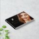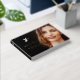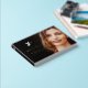 A funeral memorial tribute book. A simple photo in loving memory text and white dove with a yellow rose design in gold foil on black add your own photo, name and dates. Original design by www.mylittleeden.com