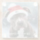 Loving Pit Bull with Santa Hat Christmas Glass Coaster