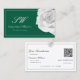 Lovingly White Rose on Green with Initials QR Code Business Card