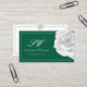 The design features a pretty large white rose on the front and a small one on the back, on a plain green and white background with a fine decorative frame.