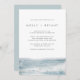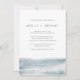 This modern coastal wedding invitation by Navy Road Creative features clean typography on a crisp white front with a soft watercolor ocean design, paired with a muted blue reverse side for details and a convenient QR code. Perfect for beach weddings, seaside ceremonies, and destination celebrations with a minimalist, ocean-inspired palette.