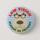 Cute illustration of a  Labrador Retriever wearing glasses, This breed is often used by people who are blind or visually impaired. Curved text reads: "Low vision, Please be patient"