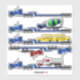Lowboy Trailer Big Rig Sticker Set. Featuring the original "Big Rig Truck" artwork of Rick Ellinger. Big rig semi truck with lowboy and various loads: dump truck, semi truck, school buses and concrete mixer. Great for scrapbooking, embellishing mugs, water bottles, school notebooks and many other items, for use as car stickers and much more. Perfect gift for the truck driver or enthusiast on your gift list or for the child who loves stickers or trucks. 5 large individual stickers.