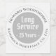 Wine label with message showing recognition of long service. Company appreciation for loyal service or for long service. A long service wine sticker label which has the name of the recipient, as well as the number of years service, and the name of the company, organisation, or business.