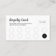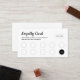 Bring a touch of professional simplicity to your business with this elegant script typography on a plain white background. These Loyalty Cards are fully customisable, with 10 blank spaces for you to record your customers' visits with a stamp or hole punch. Easily add your logo and company details.