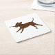 LR chocolate lab with stick Square Paper Coaster