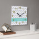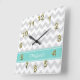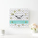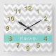 Lt Gray Wht Chevron Aqua Turquoise Name Monogram Square Wall Clock