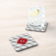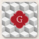 Lt Grey White 3D Look Cubes Cranberry Monogram Coaster
