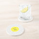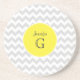 Lt Grey White Chevron Round Yellow Name Monogram B Coaster