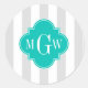 Lt Grey White Stripe Teal Quatrefoil 3 Monogram Classic Round Sticker