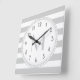 Lt Grey | White Stripes Pattern Monogram Square Wall Clock