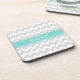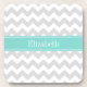 Lt Grey Wht Chevron Aqua Turquoise Name Monogram Coaster