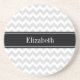 Lt Grey Wht Chevron Black Name Monogram Coaster