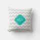 Lt Grey Wht Chevron Teal Quatrefoil 3 Monogram Cushion