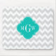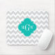 Lt Grey Wht Chevron Teal Quatrefoil 3 Monogram Mouse Pad