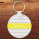 Lt Grey Wht Chevron Yellow Name Monogram Key Ring