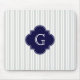 Lt Grey Wht Uneven Stripe Navy Quatrefoil Monogram Mouse Pad