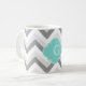Lt Two Grey White Chevron Aqua Monogram Coffee Mug