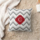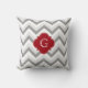 Lt Two Grey White Chevron Cranberry Monogram Cushion