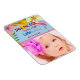 Colourful, tropical, watercolor flowers, green leaves and pink flamingo, Luau 1st Birthday Save The Date invitation magnet with photo.