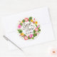 Luau beach and tropical floral and rustic white wood background save the date label design.