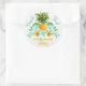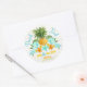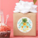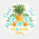 Luau beach and tropical floral and pineapple with rustic white wood background thank you label design.
