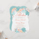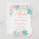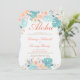 Aloha! Come away to paradise for this tropical engagement shower invitation with orange, coral, turquoise, and teal blue tropical flowers and foliage. Turquoise rattan back page.