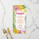Add tropical flair to your celebration with this luau engagement party menu card, featuring colourful hibiscus flowers, lush ferns, and a playful pink flamingo. Fully customisable with your event menu, names, and date, it's the perfect detail for a Hawaiian-themed, beachside, or backyard engagement dinner. Coordinates with the full luau invitation suite for a cohesive look.