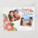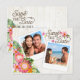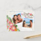 Luau tropical flowers and white wood planks rustic beach save the date postcard.