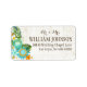 Luau tropical flowers over white wood plank rustic beach wedding labels.