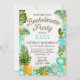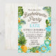 Rustic beach luau theme with tropical floral featuring plumeria, hibiscus, and pineapple bachelorette party invitation card.