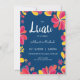 A bright and colourful tropical, Hawaiian luau theme party invitation with abstract floral border and modern "luau" text. Perfect for a luau style wedding, bridal shower, engagement party, birthday celebration or baby shower - for that fan of fun and sun.