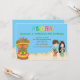 Start your celebration off right with this adorable Luau invitation. Whether it's a backyard barbecue or a kids birthday party this is the perfect invite for you! It has bright, colourful letters spelling "ALOHA" in the top centre. There's a light blue sky background with a sandy beach. On the beach are 2 Hawaiian kids dancing. The girl has long black hair and is wearing a grass skirt and a lai around her neck. The boy is playing a musical instrument, guitar. Off the the bottom left corner is a large colourful tiki head. It's the perfect invitation for a boy, girls, or twins party. Check out the many other designs and products in this line. ©pretty grafik