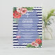 Elegant, exotic, destination card design featuring Luau Hawaiian Flowers Bouquets, navy blue stripes, a faux gold foil anchor, a gorgeous shape for information and two flamingos. For matching items, please, visit my Holy Communion Collection.