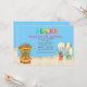 Start your celebration off right with this adorable Luau invitation. Whether it's a backyard barbecue or a kids birthday party this is the perfect invite for you! It has bright, colourful letters spelling "LUAU" in the top centre with a tropical flower coming out of it. There's a light blue sky background with a sandy beach. On the beach are 2 Hawaiian kids dancing A girl with blonde hair wearing a grass skirt. Next to her is a boy playing a musical instrument. Off the the bottom left corner is a tiki head. It's the perfect invitation for a boy, girls, or twins party. Check out the many other designs and products in this line. ©pretty grafik