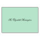 Lucite green place cards with name template. Elegant script font in black over a blank, light green background. Table number can be included when added the custom text, to use these cards as escort cards.