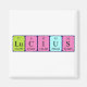 Lucius spelled out as Lu C I U S (Lutetium Carbon Iodine Uranium Sulfur) on a magnet for the scientist in you.