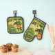 Add festive function to your kitchen with this cheerful Luck of the Irish pot holder set, part of the Brownmaiden Holiday Collections. This matching set includes one oven mitt and one square pot holder, both featuring a playful leprechaun surrounded by shamrocks, gold coins, and rich green accents.