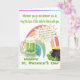 The front of this Happy St. Patrick's Day card features a Mug of Green Beer, Pot of Gold & a Rainbow, with the following message: “Wherever you go and whatever you do, May the luck of the Irish be there with you”. Message inside card: For each petal on the shamrock