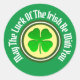 This sticker design a green background, with a yellow centre. The yellow centre has a green and white border where there is a shamrock. The text reads "May The Luck Of The Irish Be With You".  This design can be customised.