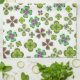 Original fine art pattern of many little Irish shamrocks by artist/designer Carolyn McFann of Two Purring Cats Studio printed on a machine-washable American Mojo kitchen towel.