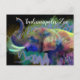 Elephant from the Indianapolis Zoo, Colourful Elephant Raising its nose overlayed with lovely flowers from the zoos gardens and landscaping, a traditional sign of good luck remember your trip with this great postcard Photography copyright to Erin Cooper