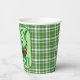 Lucky and I Gnome It St Patrick's Day Party Paper Cups. Funny quote image with a large green hat and two gnomes wearing green plaid. Green plaid wrapped around. Personalise this template.