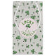 Features a cute pattern of green clovers and little green hearts on a tiny gingham pink and green background. Personalised with baby girl's name on both sides.