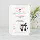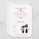 Fabulous wedding invitations stylish yet fun design with cute lucky black cats dressed as bride and groom; on the reverse is a red and white pretty red love heart pattern, very elegant.
