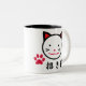The Manekineko (written here in kanji and translated as beckoning cat) is a very popular symbol of good luck in Japan. This lucky cat is white (brings good luck) and has its right paw up (brings good luck with money)!